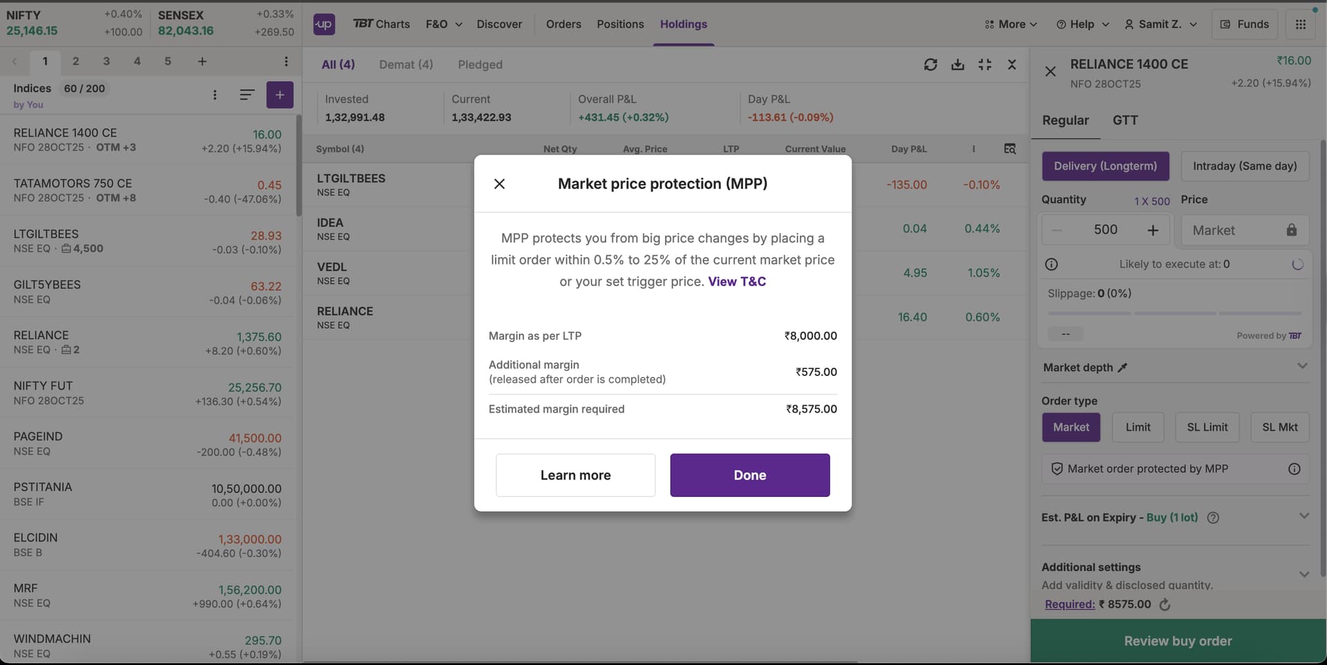 We believe in empowering you with all the information you need. To provide greater clarity, we have now added a feature that shows you the approximate additional margin required when MPP is applied to your order. This ensures you understand the full picture before you trade.